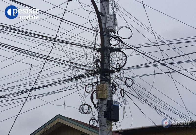 Pantauan di lapangan menunjukkan kabel-kabel milik penyedia layanan internet terpasang tanpa penataan yang rapi. Bahkan, sebagian kabel terlihat menggantung rendah dan saling melilit, serta menumpang pada tiang listrik milik PLN tanpa pengamanan yang memadai.